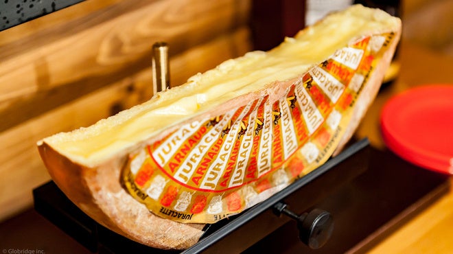 大人気のラクレットチーズは、厳選しこだわり抜いたフランス直輸入のラクレットレクリュを使用。ナッツのような香ばしさと、大迫力の滝のように流れる滑らかさが特徴で、日本人好みの味わいのチーズです。お客様の目の前で、流しかける演出が人気商品となっております。