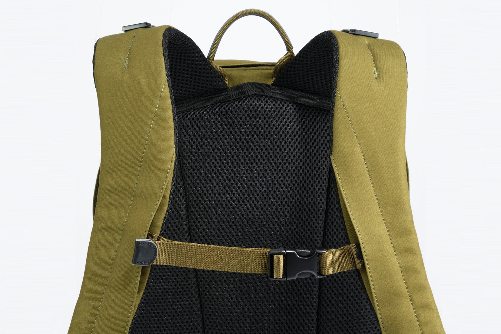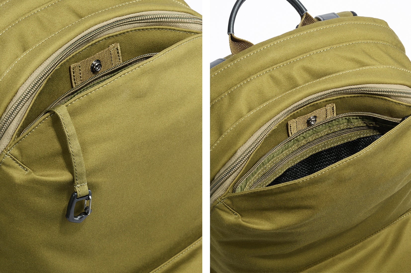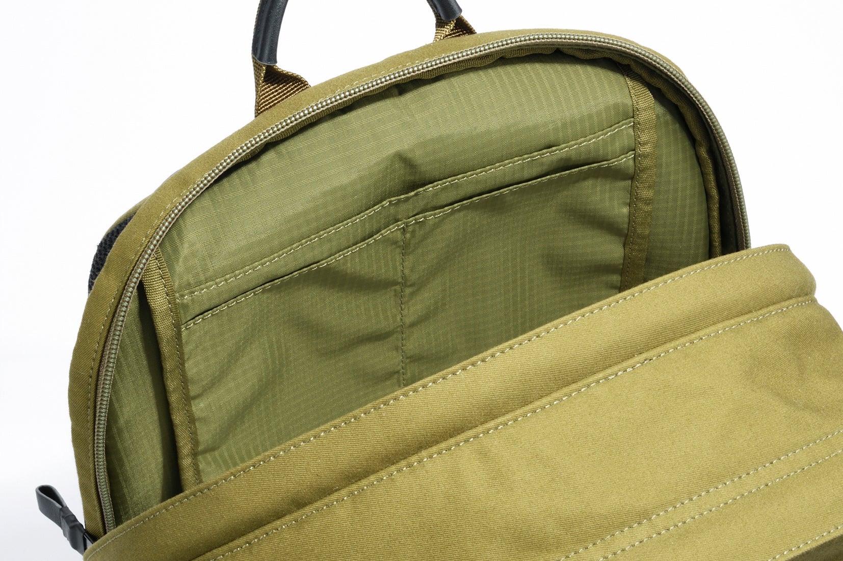 デイパックのオーセンティックなデザインは崩さず、外から見えにくい部分にセキュリティ性を考慮したポケットやPC収納部を配し、使い心地を向上させるとともに、背負い心地にもこだわっています。