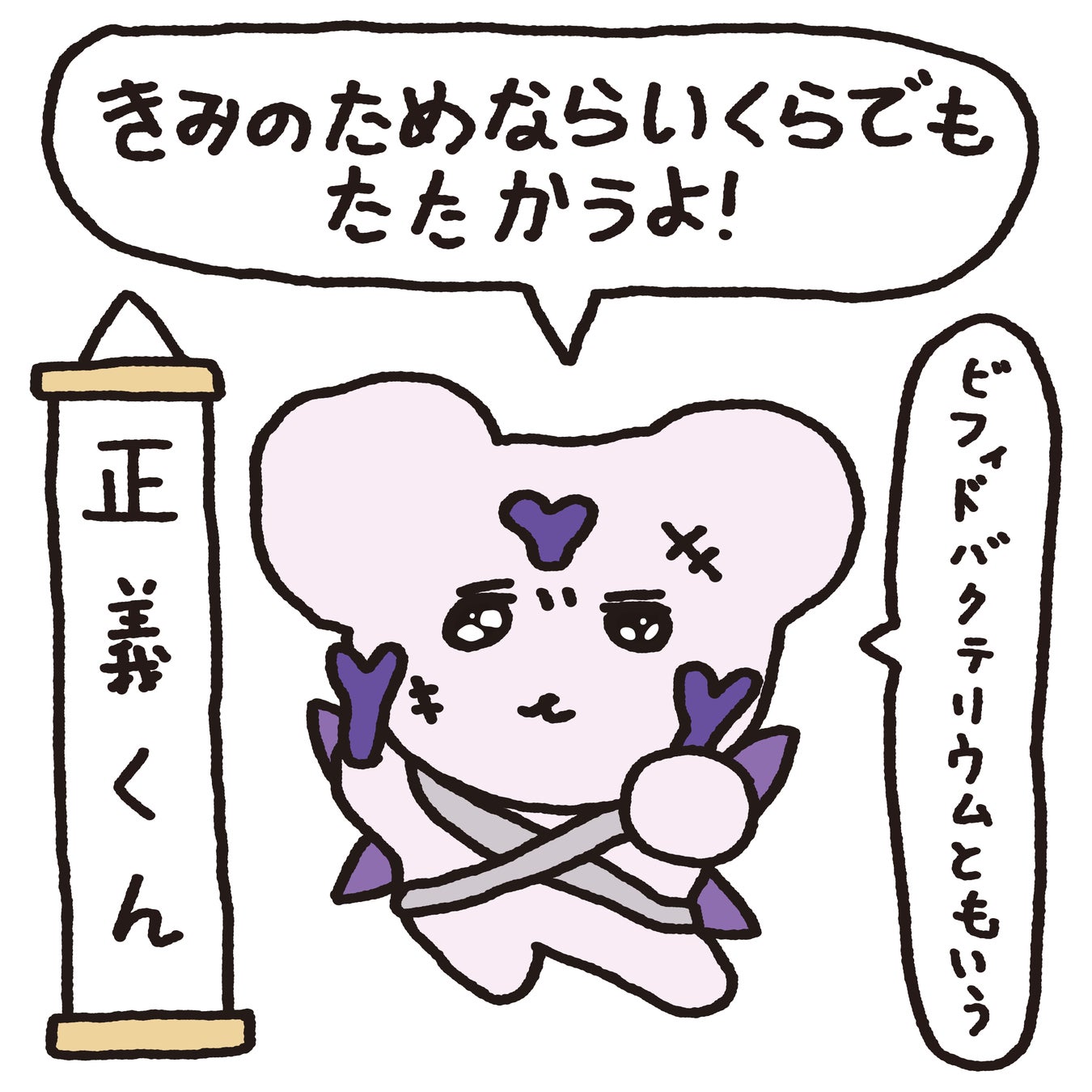 もっとも多くの人のおなかに存在する菌。みんなの頑張りを、いつも見守っているよ!