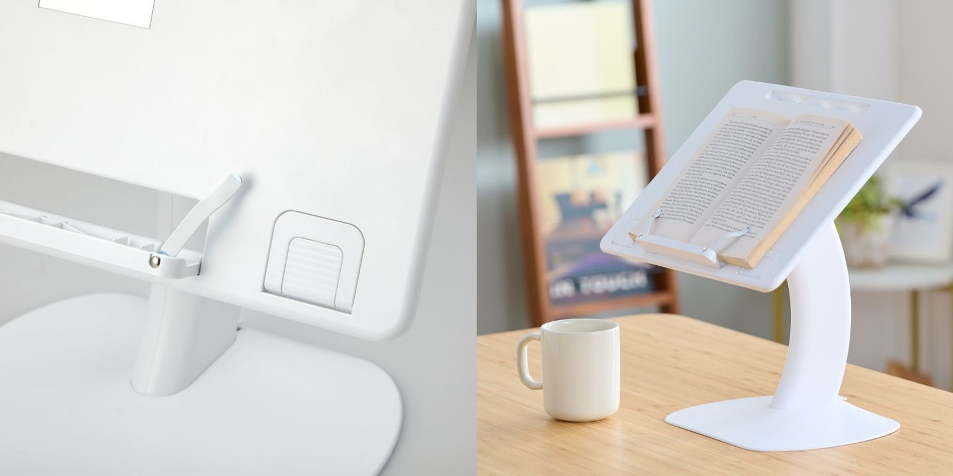 - ページを留めるクリップ付きで書籍を置いてブックスタンドとしても使用できる