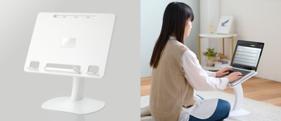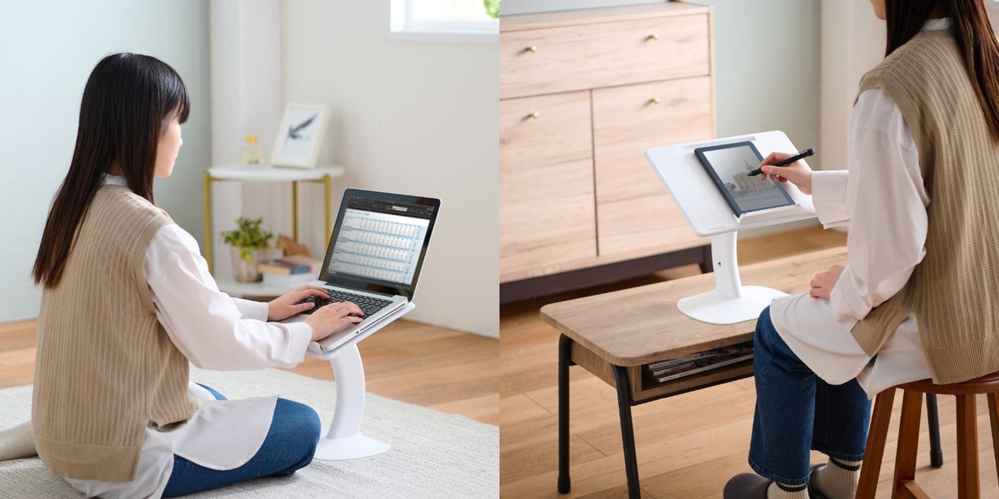 デスクがなくてもノートパソコンやタブレットの操作が快適に!使う場所を選ばず、好みの角度で作業ができるドローイングタイピングスタンドを新発売