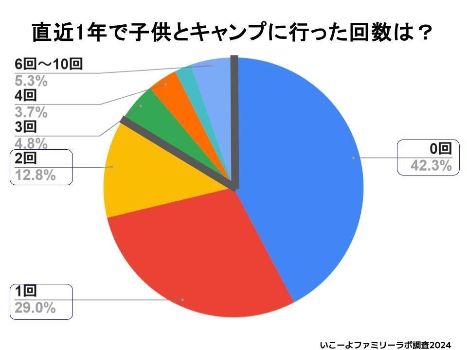 一方で、直近1年で子供とキャンプに行った回数を聞くと「0回」(42.3%)が最も多くなりました。