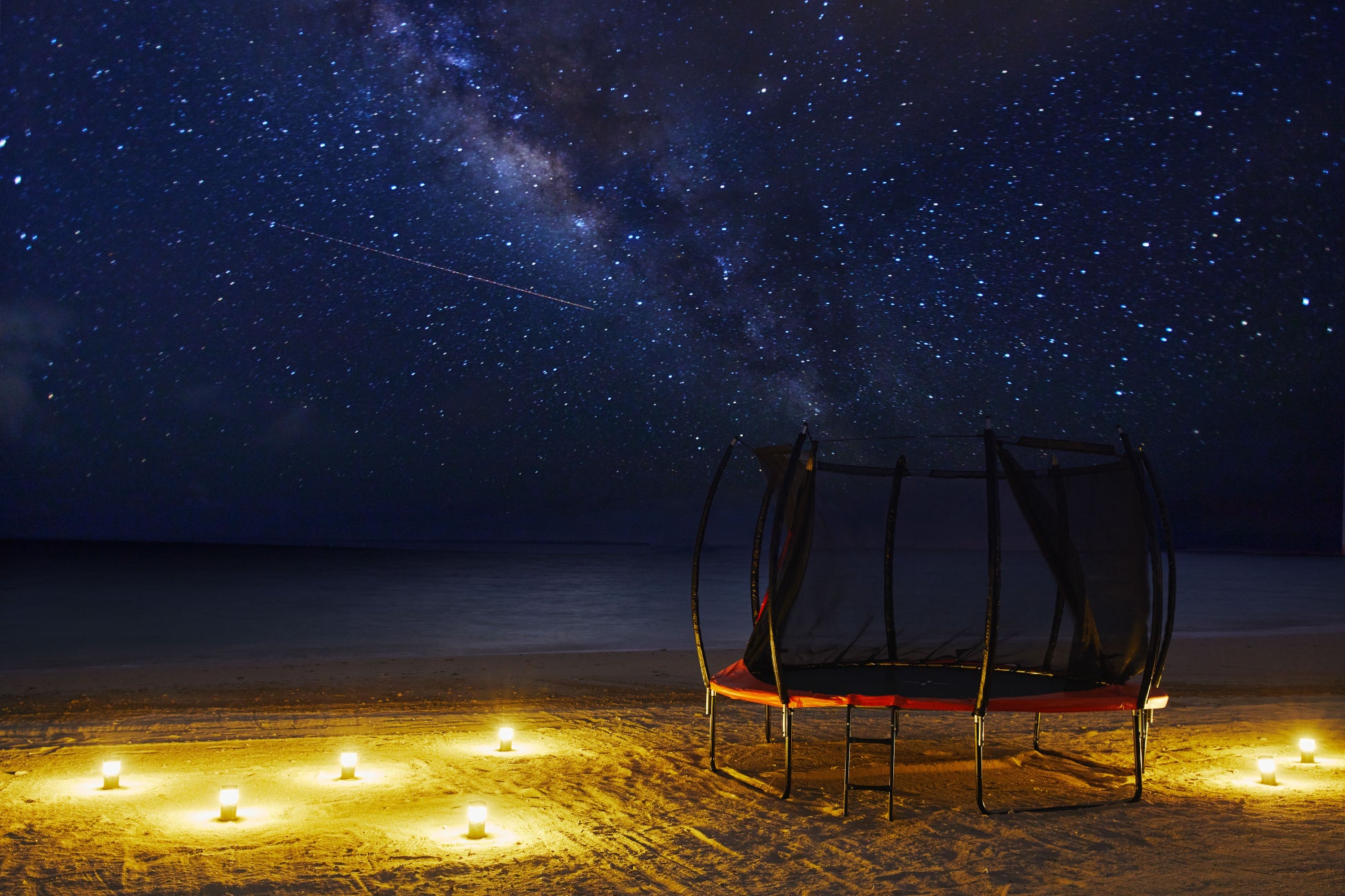 ホテル隣接のビーチに、今年も「ティンガーラトランポリン」が登場します。手を伸ばしながらトランポリンで跳ねると、真夏の夜空にかかる壮大な天の川をつかむような気分を味わうことができます。トランポリンで跳ねて楽しんだ後は、寝転んでゆっくりと星空鑑賞を満喫。跳ねて寝転んで、様々な形で満天の星の下での滞在を楽しむことができます。