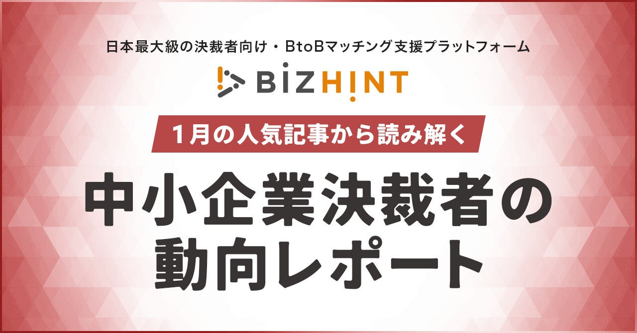 Visionalグループの株式会社ビズヒント(所在地:東京都渋谷区/代表取締役社長:関 哲)が運営する、クラウド活用と生産性向上の専門サイト「BizHint(ビズヒント)」(https://bizhint.jp/ 以下、BizHint)は、1月の人気記事ランキング(※1)から読み解く、中小企業の決裁者が注目しているトレンドやポイントを、中小企業コンサルティングの専門家である井領 明広氏(つづく株式会社)の分析を踏まえて動向レポートとして発表しました。
