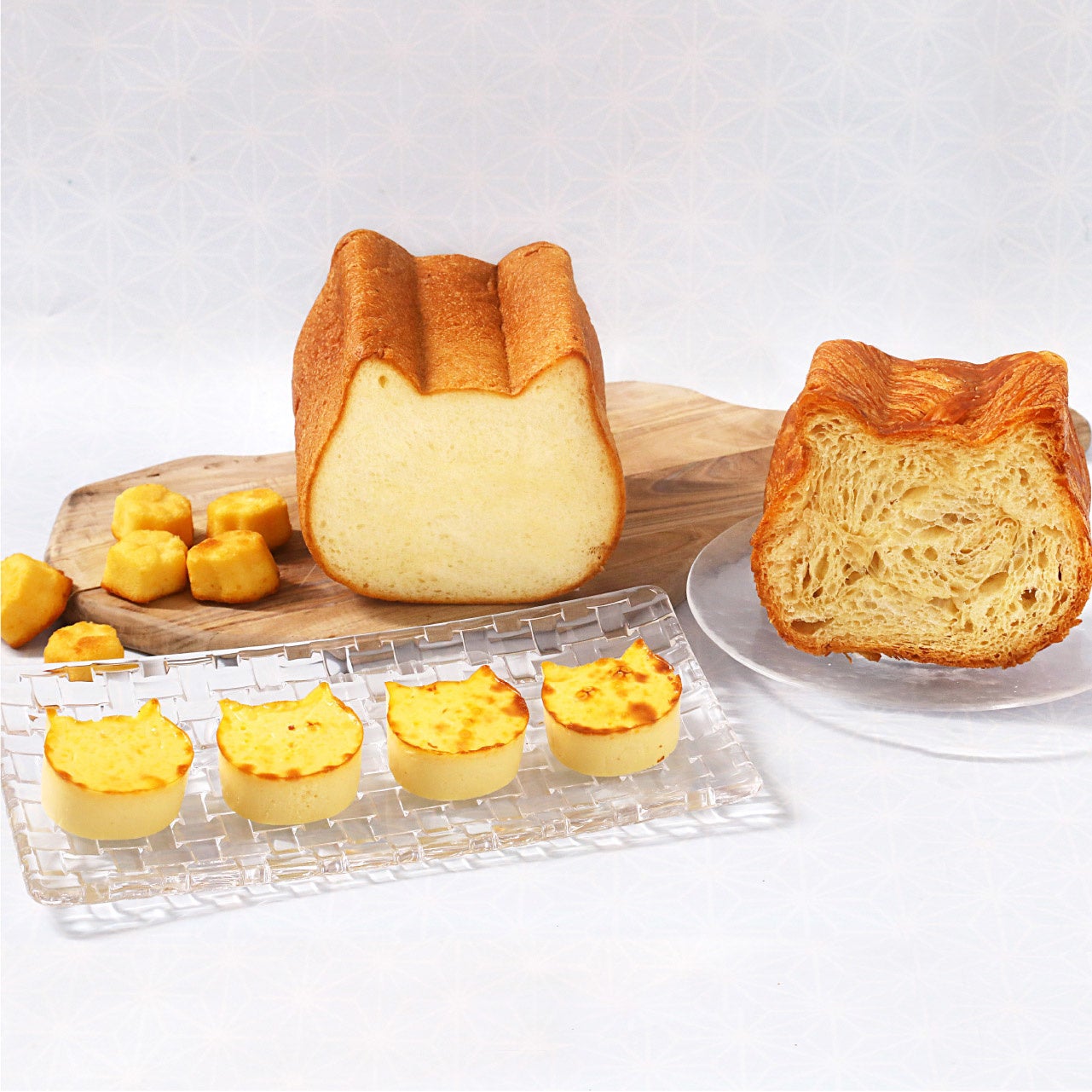 昨年まではねこねこ食パンのみのセットでしたが、2022年はねこねこ食パンと厳選したねこ形スイーツ2種をセットでお届けいたします。朝食でねこねこ食パン、ティータイムにねこ形スイーツをお楽しみいただける、”にゃん”とも嬉しいセット内容となっております。