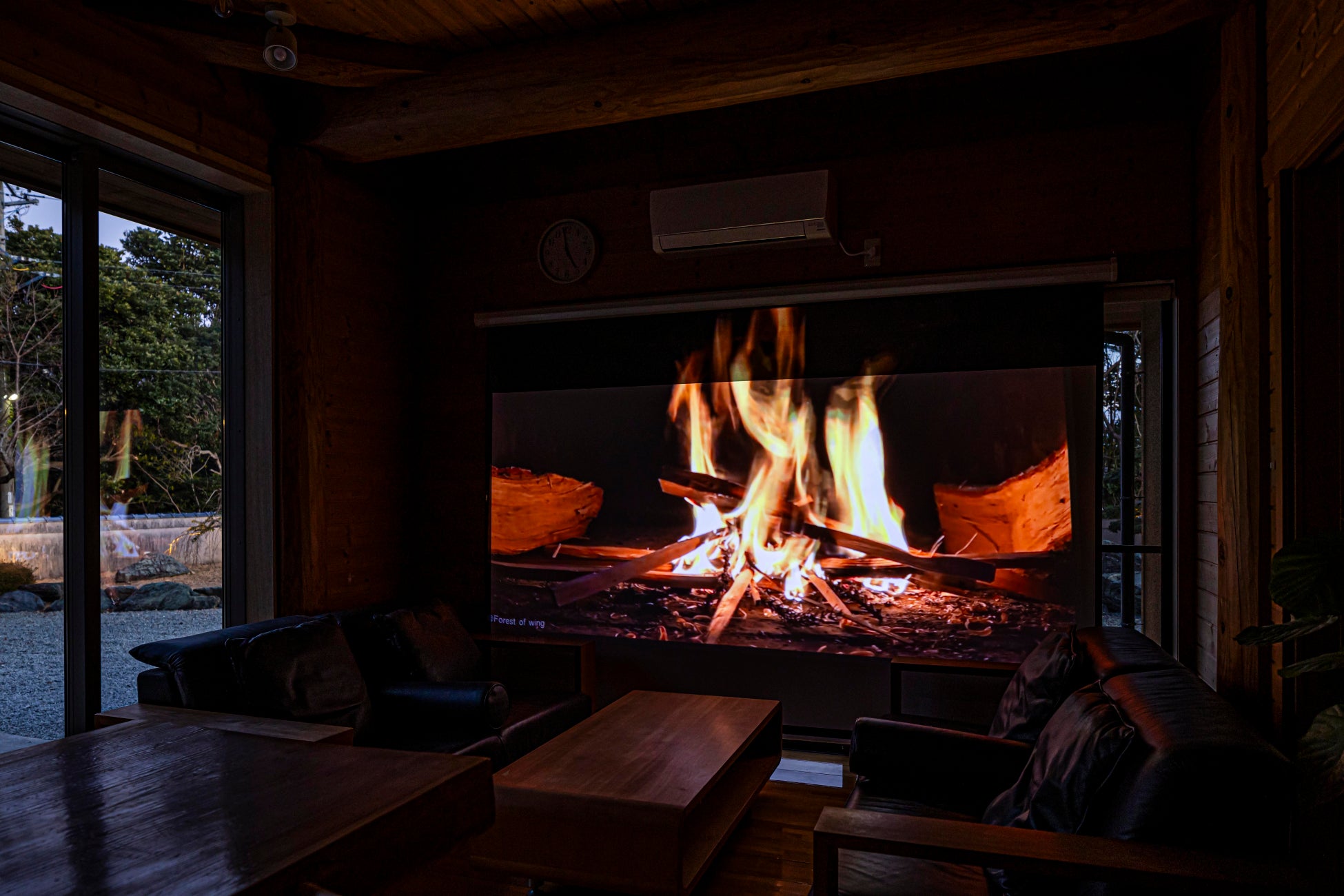 1棟貸切の広々とした空間は最大8名様まで宿泊可能です。揃えているのはミラブルのシャワーヘッドやReFaのドライヤーなどの高級設備。リビングスペースには大型スクリーンとプロジェクターを完備しており、まるでプライベートシアターのような空間で、大切な人や家族との時間をさらに特別なものにします。木の温もりと和のエレガンスを融合させたログハウス風のデザインで、落ち着いた雰囲気の中、心安らぐひとときをお届けします。