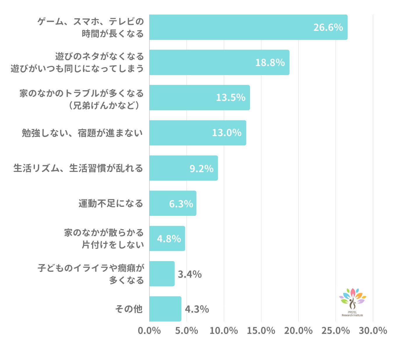 発達障害グレーゾーンの困りごとを大人に持ち越さないことを目指すリサーチ機関「パステル総研」を運営する株式会社パステルコミュニケーション(本社:東京都豊島区/代表取締役:吉野加容子)は、2024年最新発達障害グレーゾーンの子どもの夏休み、家での過ごし方についてアンケート調査を実施。小学生の保護者の90%超が夏休みの過ごし方に困りごとやお悩みがあると回答。困りごとランキング1位~5位と合わせてアンケート結果をご報告致します。〈https://desc-lab.com/182397/>