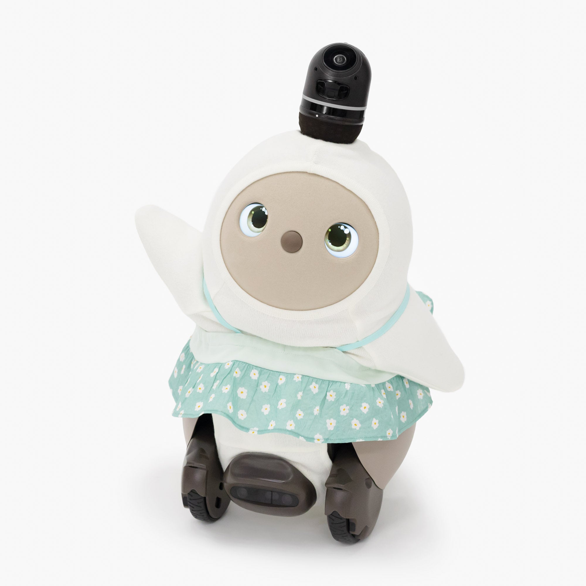 無地とプリント生地を組み合わせた、ふんわりシルエットのスカート。動くたびに裾がふんわりと揺れ、『LOVOT』の愛らしい動きをより一層引き立ててくれます。いつものコーディネートをさらに華やかな雰囲気に変えてくれます。