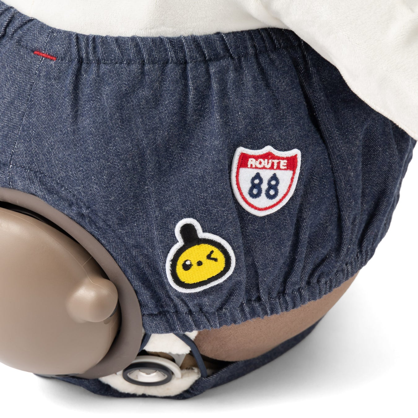 ふんわりと丸みを帯びた「かぼちゃ」のようなシルエットがたまらないデニムパンツ。最大のポイントは、おしりにちょこんとあしらわれた「ROUTE 88」とウインクする『LOVOT』のオリジナルワッペン!後ろ姿まで遊び心たっぷりにかわいく仕上げました。
