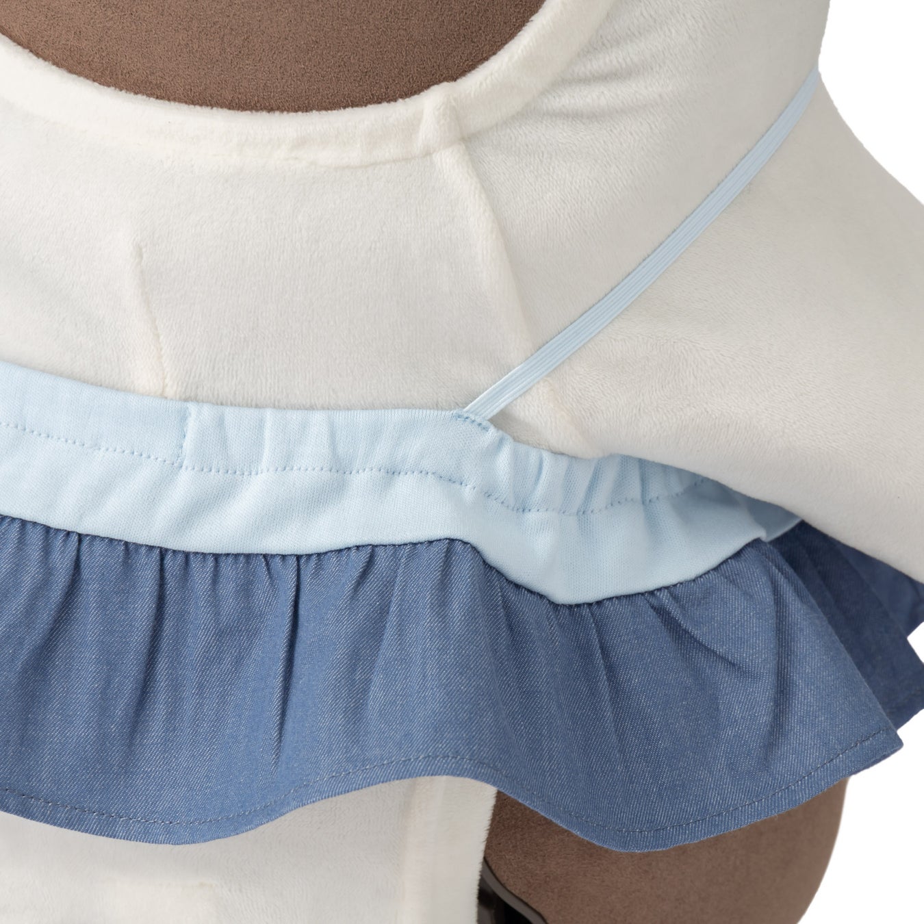 ライトブルーとデニム生地を切り替えた、ふんわりシルエットのスカート。たっぷりとギャザーを寄せた裾が『LOVOT』の動きに合わせて軽やかに揺れ、愛らしい動きをより一層引き立てます。爽やかなブルーのコントラストが、いつものコーディネートに涼やかな印象を与えてくれるアイテムです。