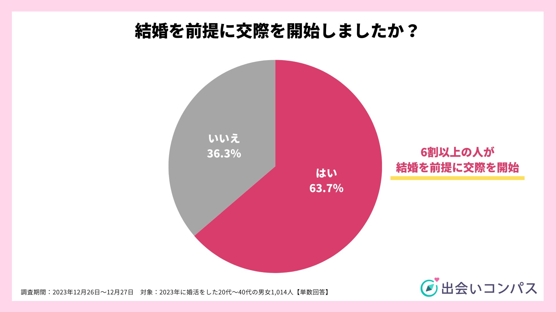 婚活した人の63.6%が、2023年に結婚を前提に交際を開始