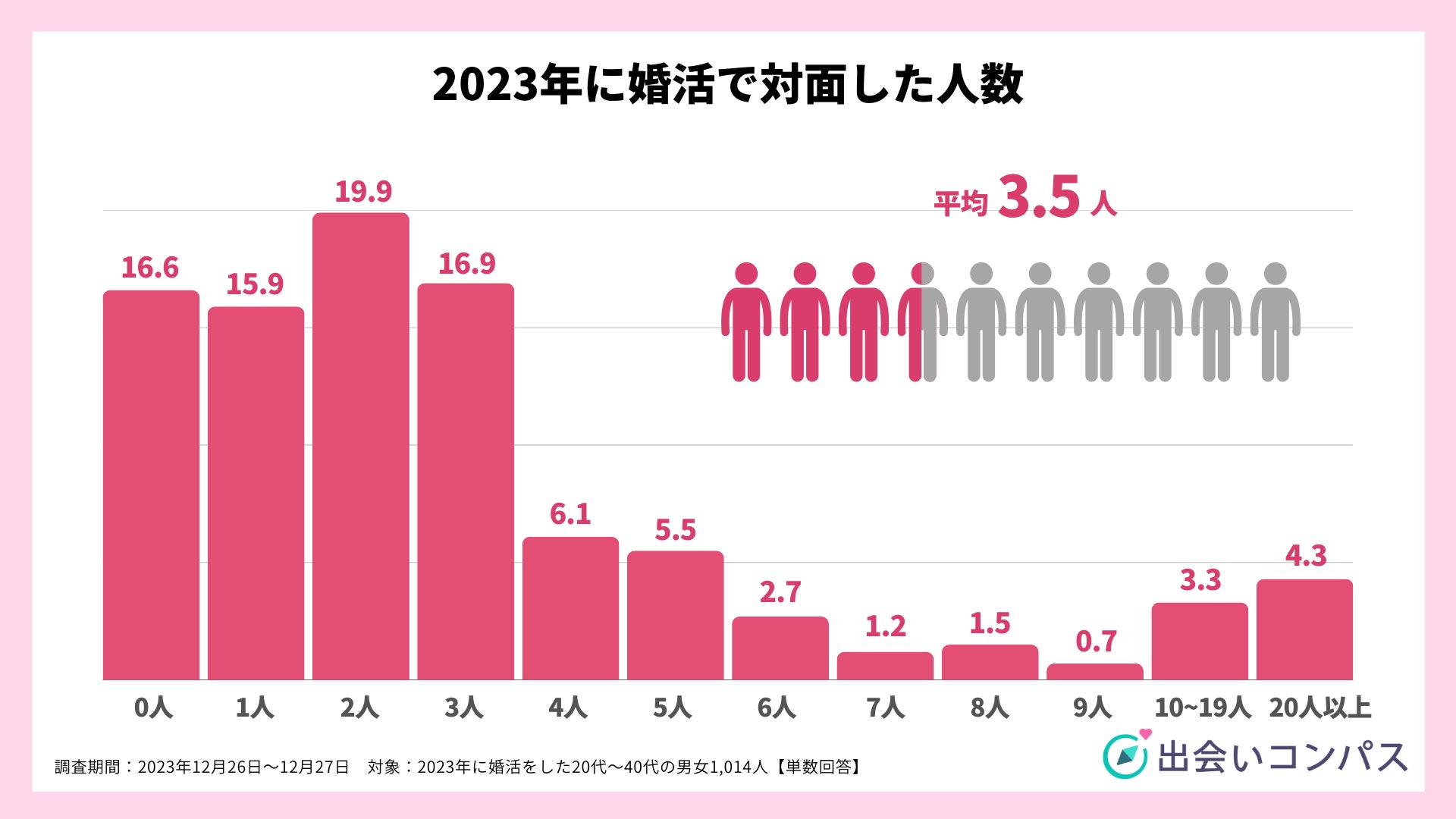 2023年に婚活を通じて対面した人数は、平均3.5人