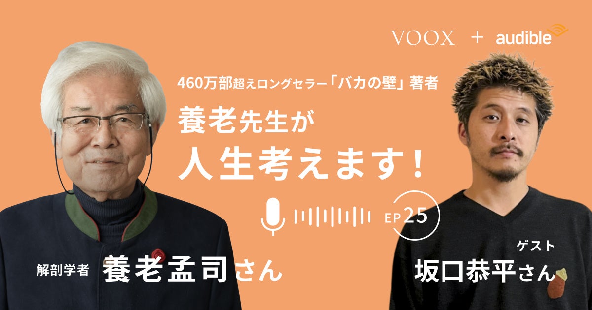 『養老先生が人生考えます! Ep25.坂口恭平さん直接相談しますの特別回(前編)「いのっちの電話は組織化すべきでしょうか」』Audibleにて、配信開始!