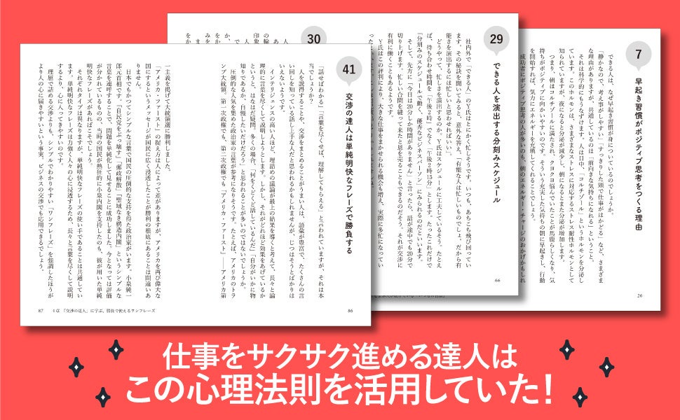 本書では、社内外の人づきあい、取引先との交渉、接客時など、あらゆる“壁”を乗り越えるための心理テクニックを一冊にまとめました。