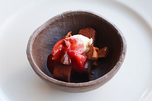 まろやかな口どけが印象的なテリーヌは2種類のチョコを使用しています。『苺ソース』『生クリーム』と一緒に食べるとさらに美味しさが増します。