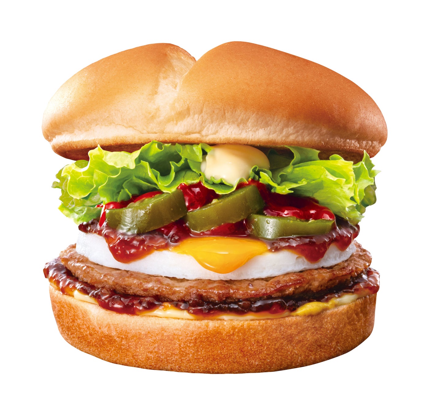 同時に、定番の「てりやきバーガー」を月見風にアレンジした「和風半熟月見 てりやきバーガー」、ハラペーニョと特製旨辛ソースを加えた「和風半熟月見 旨辛てりやきバーガー」、プリプリサクサク食感のエビパティに月見をイメージした半熟風たまごを合わせた「和風半熟月見 エビバーガー」も販売します。