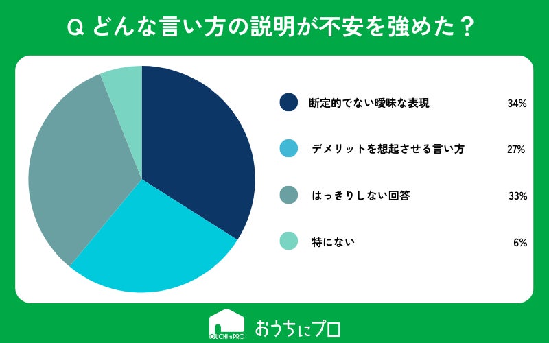 不安感を強める説明内容としては「断定的でない曖昧な表現」「はっきりしない回答」が多く挙げられている。