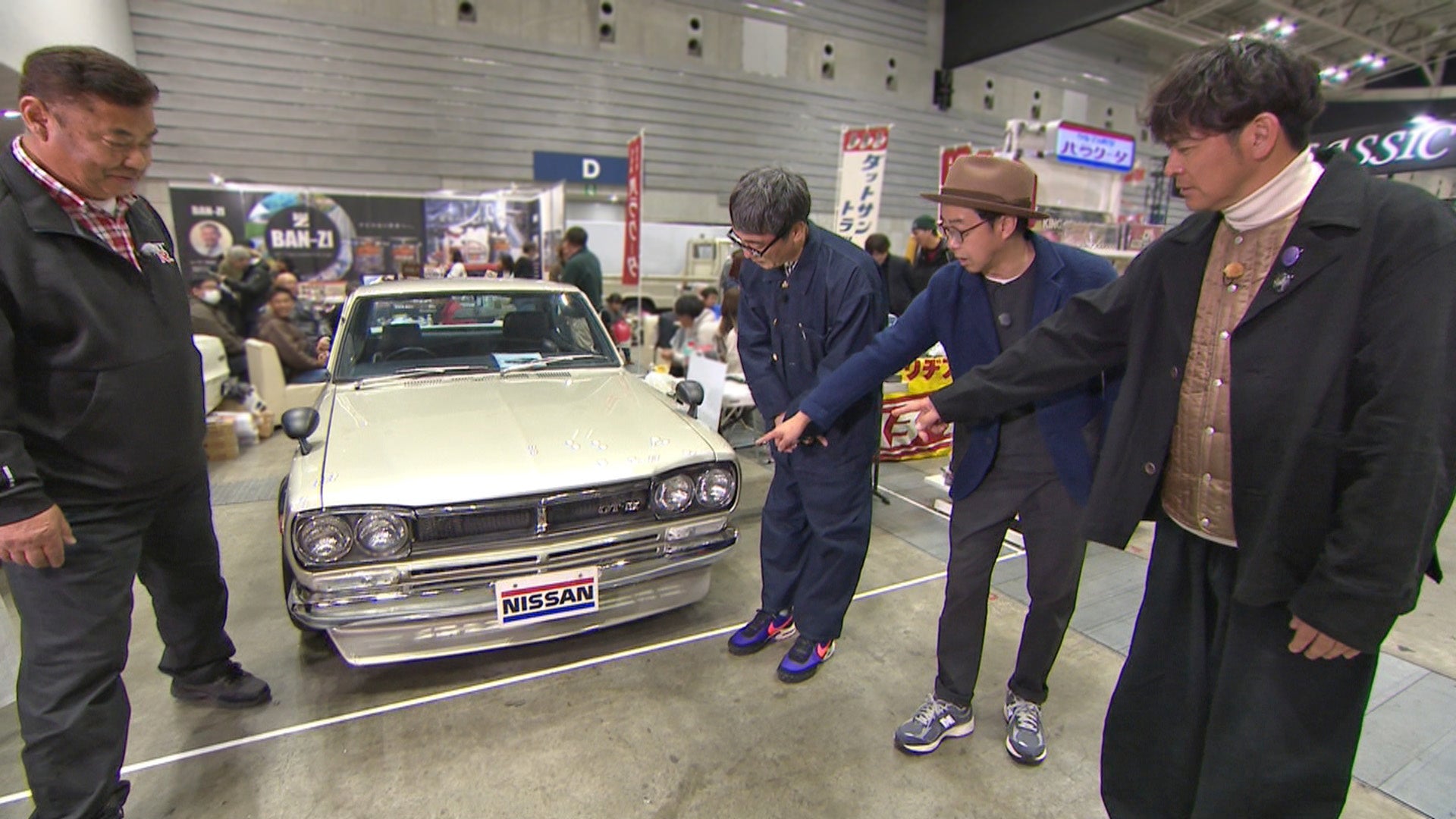 会場には、珍しいスカイラインのワゴンも展示されていた。スカイラインはずっと追いかけていたという岡田さんも、「ワゴンは分からない」と驚きの発掘もの。小木は「お子さんがいて、家族がいるから、ちょうどいいよね」と、岡田さんにファミリーカーとしての購入を猛プッシュする。