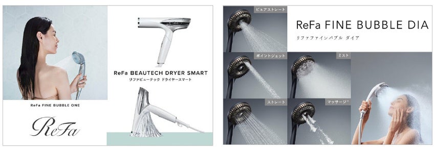 2種類の泡ウルトラファインバブルとファインバブルで肌を美しくするシャワーヘッド「ReFa FINE BUBBLE ONE」とコンパクトながら驚きのパワーを持つヘアドライヤー「ReFa BEAUTECH DRYER SMART」で、仕上がりの美しさをぜひ体感してください。