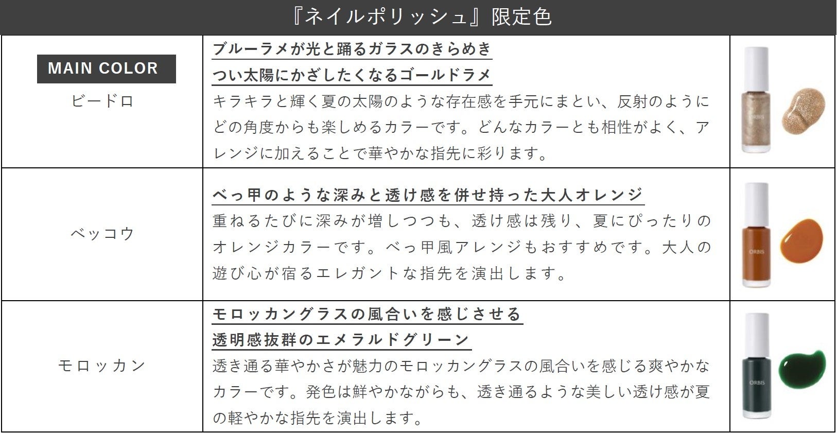 ■ 商品名:『ネイルポリッシュ』限定色 【NEW】 ビードロ/ベッコウ/モロッカン