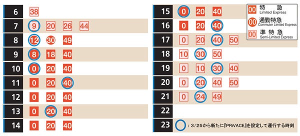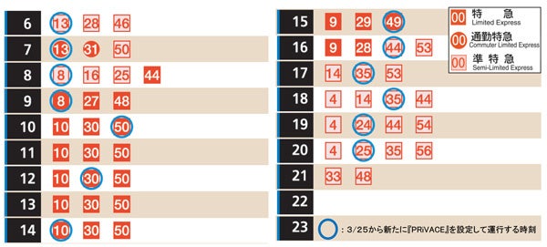 ■2025年3月25日からの『PRiVACE』発車時刻表 ※ダイヤの変更はありません
