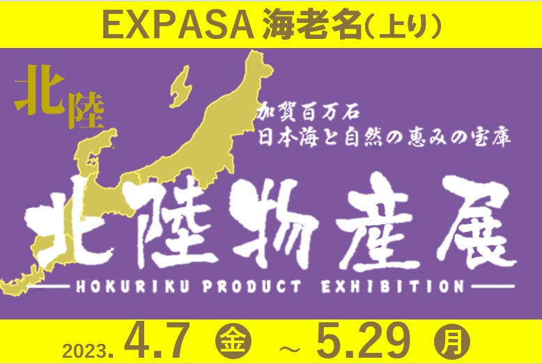 中日本エクシス株式会社 南関東支店(神奈川県海老名市、支店長・渡辺(わたなべ)宏也(ひろや))は、E1 東名高速道路(東名) EXPASA(エクスパーサ)海老名(上り、神奈川県海老名市)にて、期間限定で「北陸物産展」を開催します。