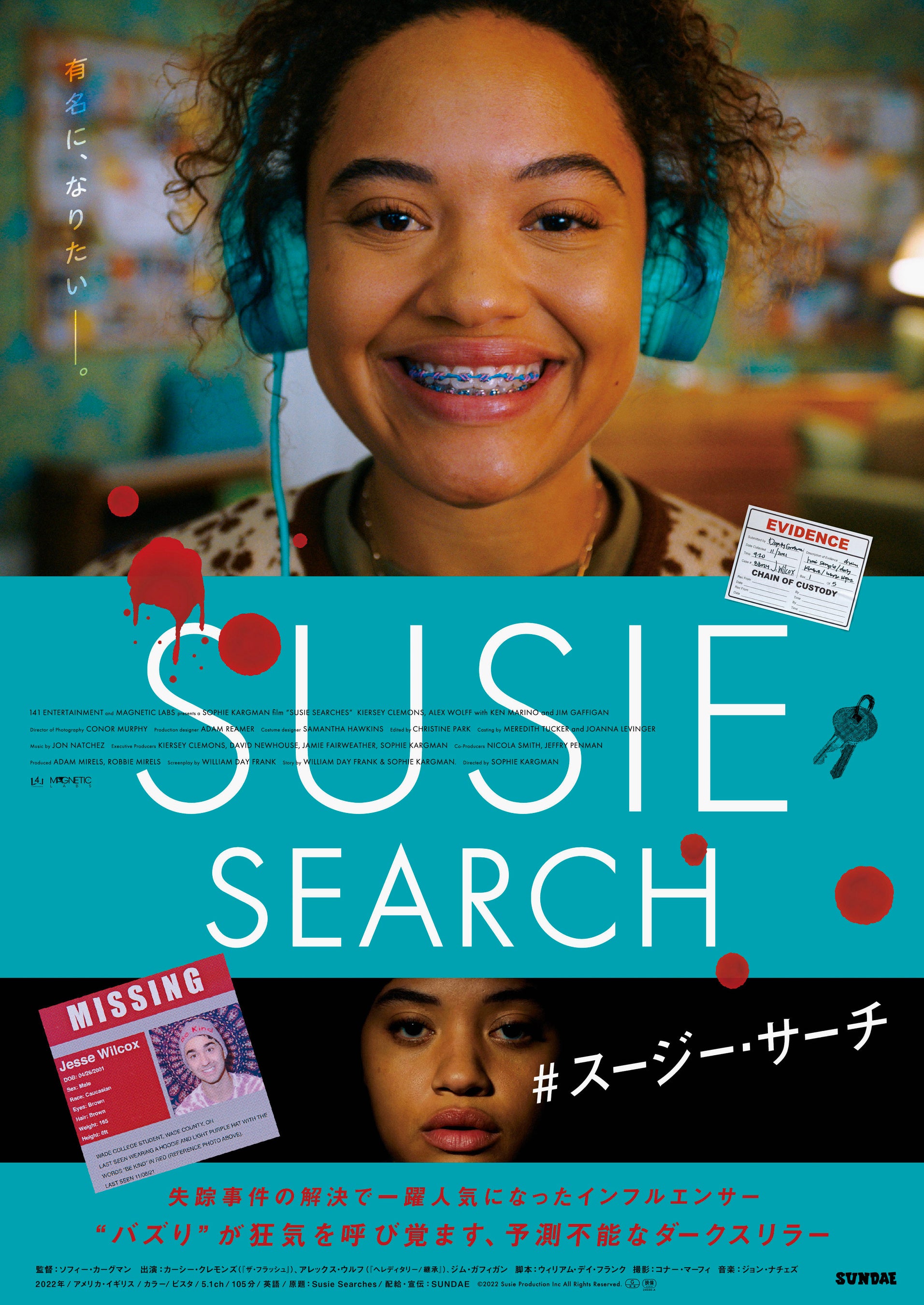 「いいね!」やフォロワー獲得に魅入られていくインフルエンサーと、それを欲する現代社会をブラックかつコミカルに描いた『#スージー・サーチ』は、トロント国際映画祭でのワールドプレミアを皮切りに「インスタントな名声と称賛を求める SNS 文化を鋭く風刺している」、「独創的でサスペンスフル!」「衝撃のラスト」と大きな注目を集めた。監督は本作が長編デビュー作となる新鋭ソフィー・カーグマン。主演に『ザ・フラッシュ』のカーシー・クレモンズ、共演に『ヘレディタリー/継承』のアレックス・ウルフを迎え、現代的なテーマをポップな色彩で映し出す。スリリングに加速していく狂気に満ちた予測不能なダークスリラーが、遂に日本に上陸する。