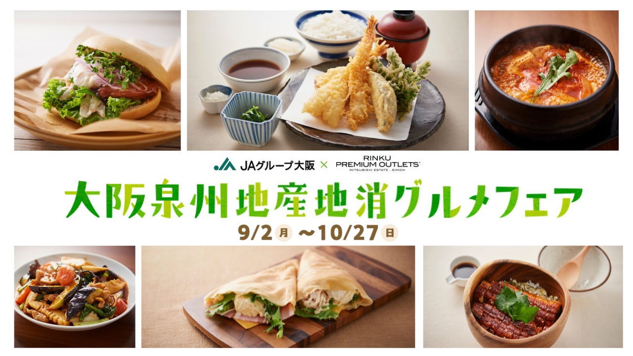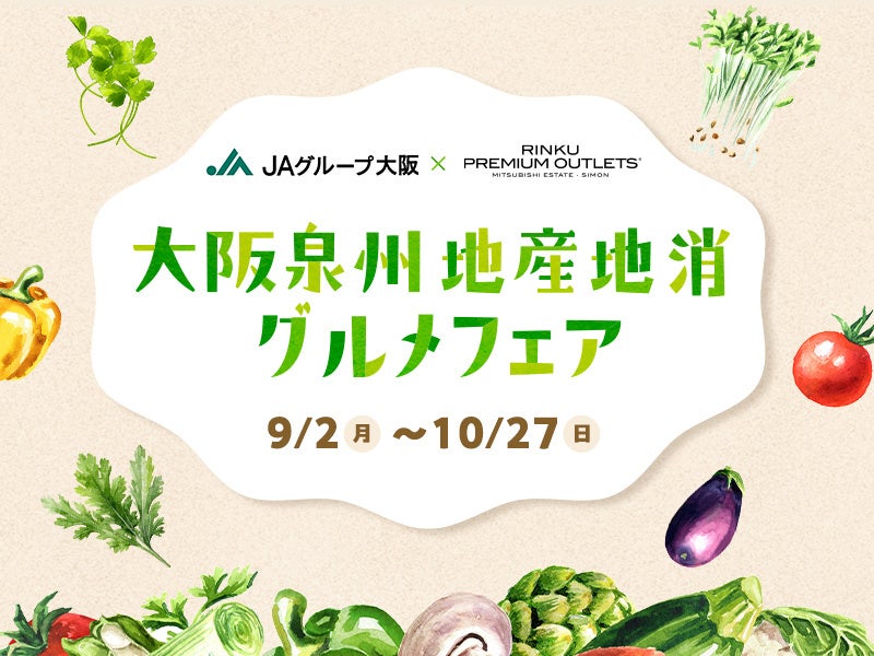りんくうプレミアム・アウトレット(所在地:大阪府泉佐野市 運営:三菱地所・サイモン株式会社)は、9月2日(月)から10月27日(日)の期間、JAグループ大阪と連携し、アウトレット内の飲食店舗で地元野菜を使用した地産地消グルメを提供する、「大阪泉州地産地消グルメフェア」を初開催します。