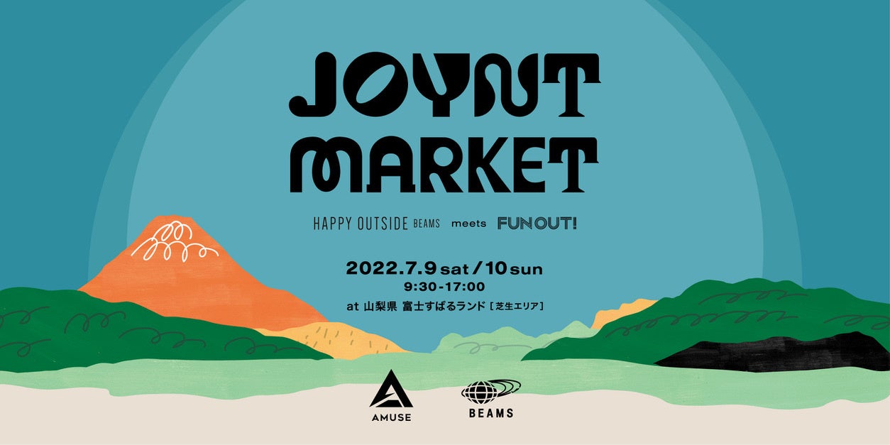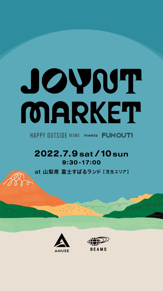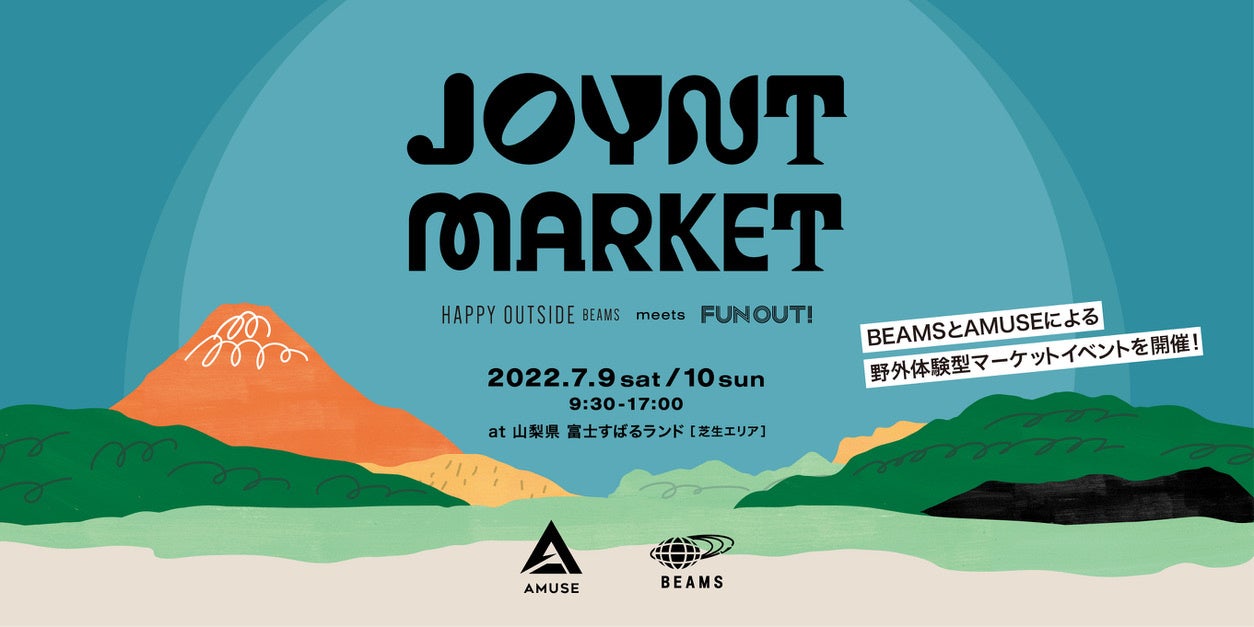 株式会社ビームス (本社:東京都渋谷区、代表取締役社長:設楽洋、以下BEAMS)は、総合エンターテインメント企業、株式会社アミューズ(本社:山梨県南都留郡富士河口湖町、代表取締役 社長執行役員 中西 正樹、以下AMUSE)と、山梨県に位置する富士すばるランドにて、野外体験型マーケットイベント『JOYNT MARKET-HAPPY OUTSIDE BEAMS meets FUN OUT!-』を7月9日(土)、7月10日(日)に共同開催いたします。