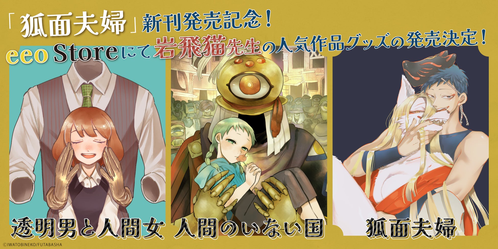 4/30(火)より、岩飛猫先生の双葉社作品『狐面夫婦』『透明男と人間女~そのうち夫婦になるふたり~』『人間のいない国』3作品がeeoStore onlineにて一挙グッズ化!