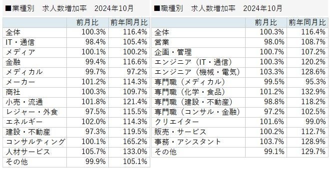 パーソルキャリア株式会社が運営する転職サービス「doda(デューダ)」(編集長:桜井 貴史)は、2024年10月の転職求人倍率をまとめた「doda転職求人倍率」を発表いたします。