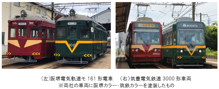 ※両社の車両に阪堺カラー・筑鉄カラーを塗装したもの】