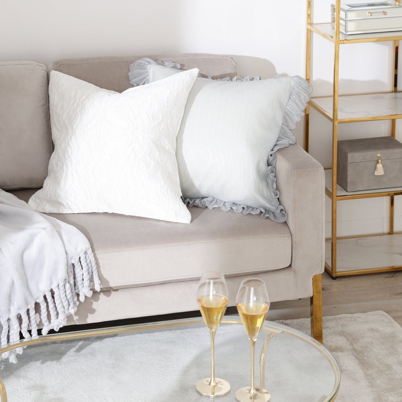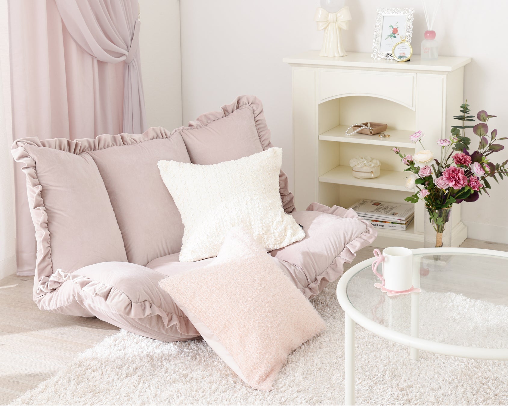 柔らかく繊細な世界観を演出するフェミニンなクッションカバーセット