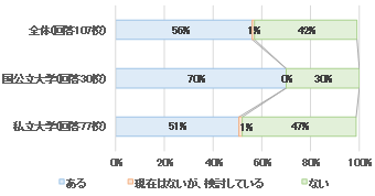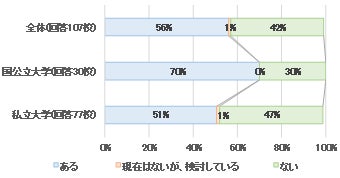 全体で「実施」との回答が56%。特に国公立大学は、70%が「実施」との回答。