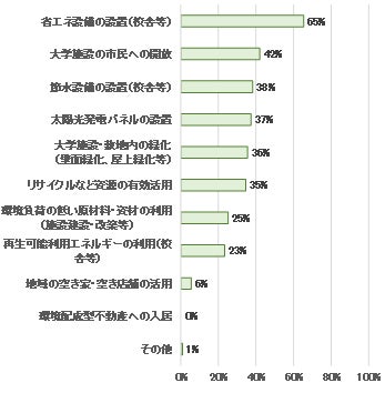 「省エネ設備の設置(校舎等)」との回答が65%。