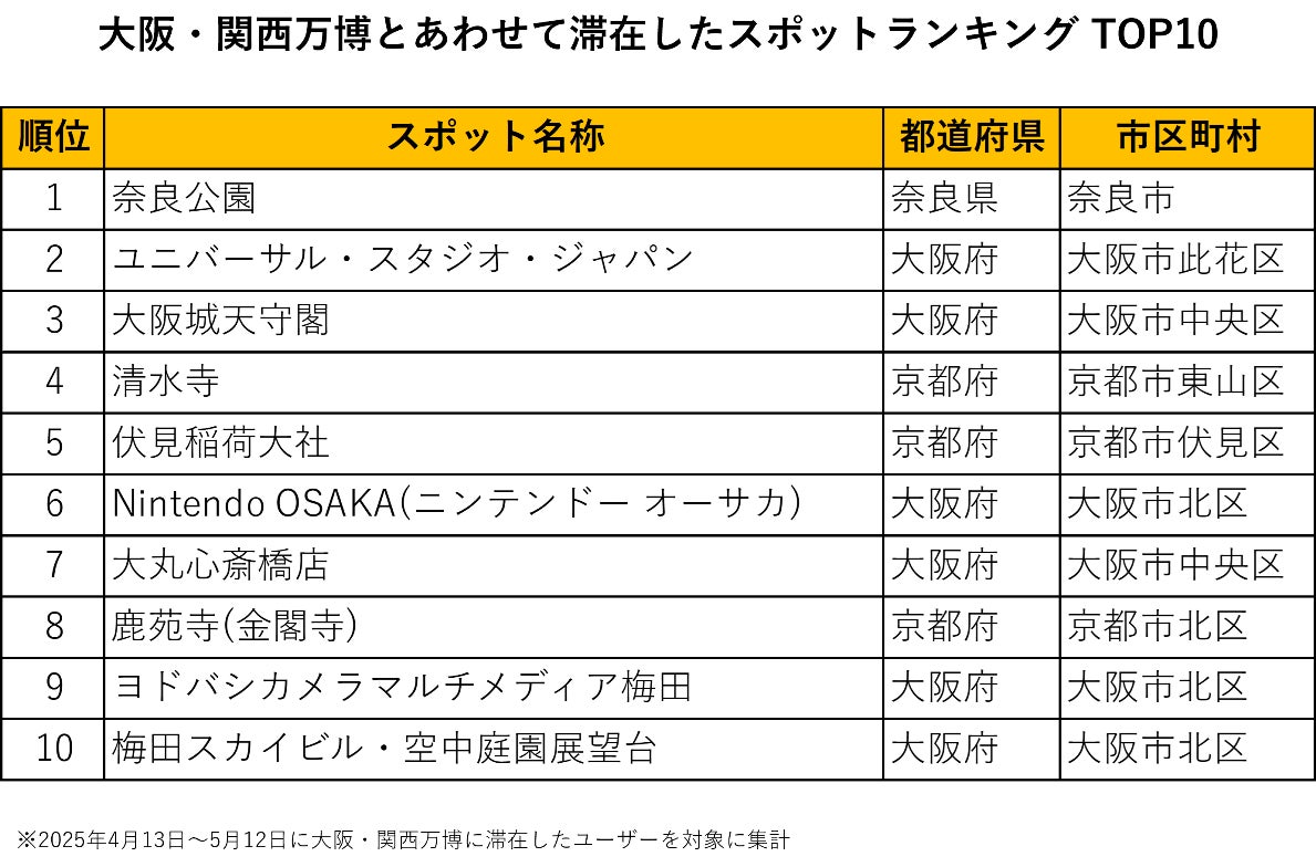 - 大阪・関西万博とあわせて滞在しているスポットランキングTOP10