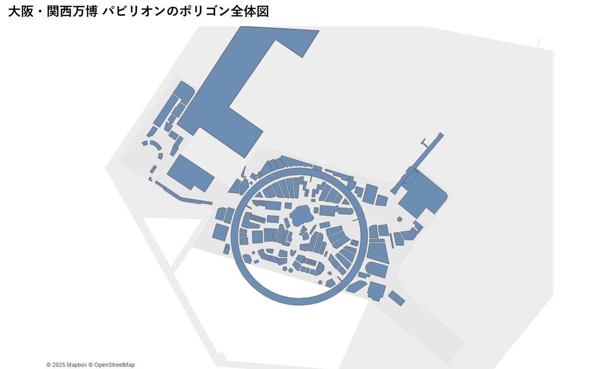 ※パビリオンの国別来訪状況は、大阪・関西万博会場滞在者を対象に各パビリオン建物でのGPSデータ測位状況を元に集計しています。パビリオンの建物形状はゼンリンのポリゴンデータを参考に、ナビタイムジャパンが作成しています。