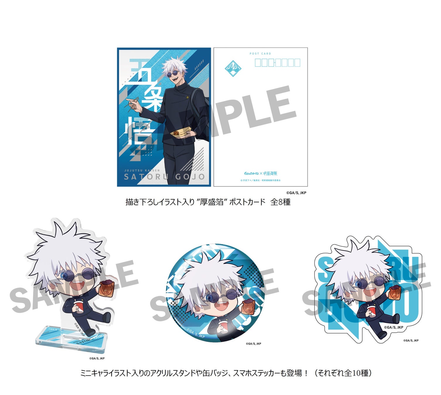 商品概要:登場キャラクターの五条悟らをイメージした 「当コラボ限定のたこ焼」 を、オリジナルデザインの「特製スリーブ」 に入れ販売!当コラボたこ焼1舟ご購入で、 「限定コラボカード」 が1枚付いてくる!