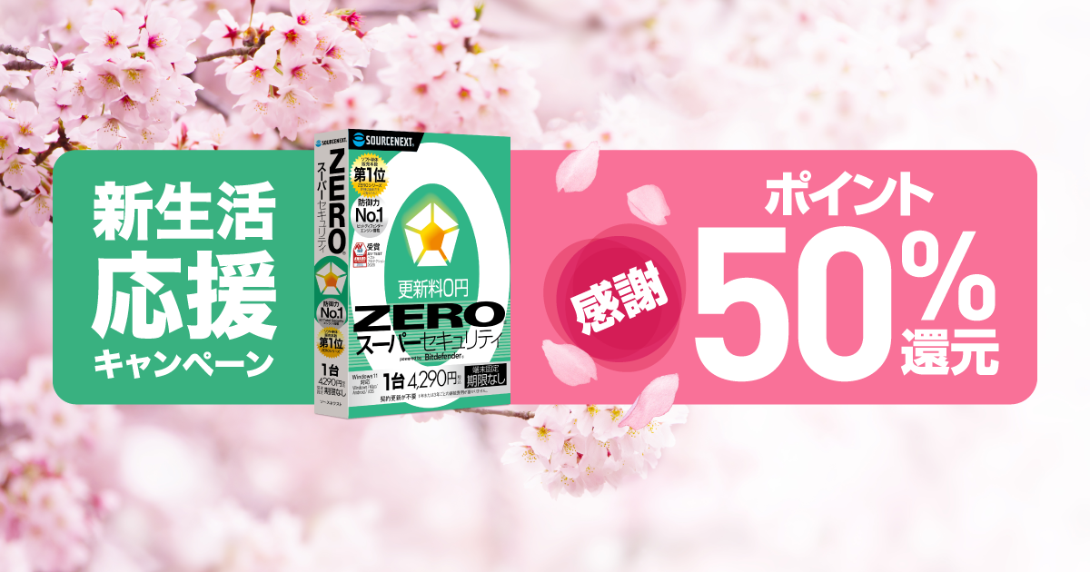 「ZERO® スーパーセキュリティ」が、実質半額 「新生活応援 ポイント50%バックキャンペーン」 本日から5月8日(日)まで開催