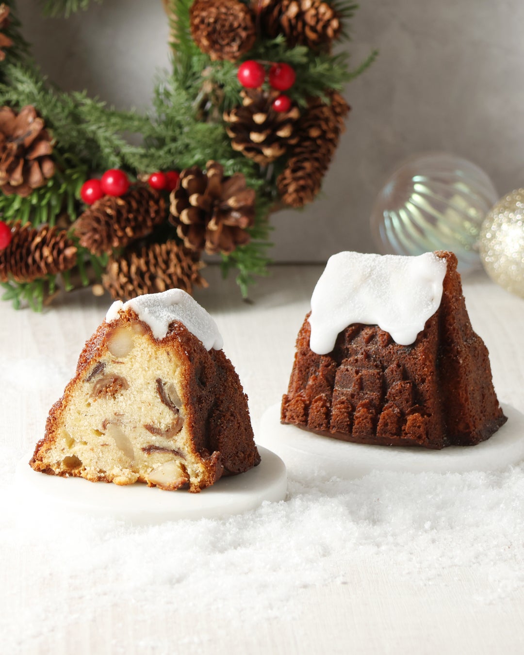 ドライフルーツとナッツをブランデーに漬け込み、生地にたっぷり混ぜ込んで焼成。さらに焼き上がりにブランデーを染み込ませ、深みのある香りとしっとりとした余韻を楽しめる贅沢な一品です。