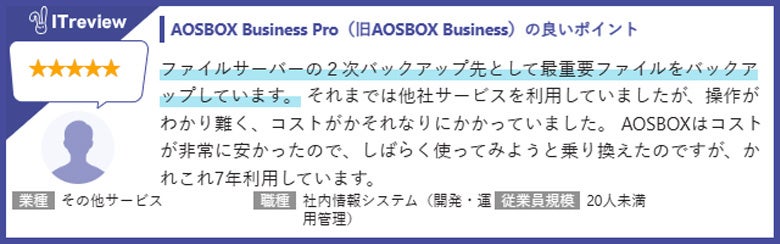 ■「AOSBOX Business Pro」が選ばれている理由 (ITreviewより抜粋)