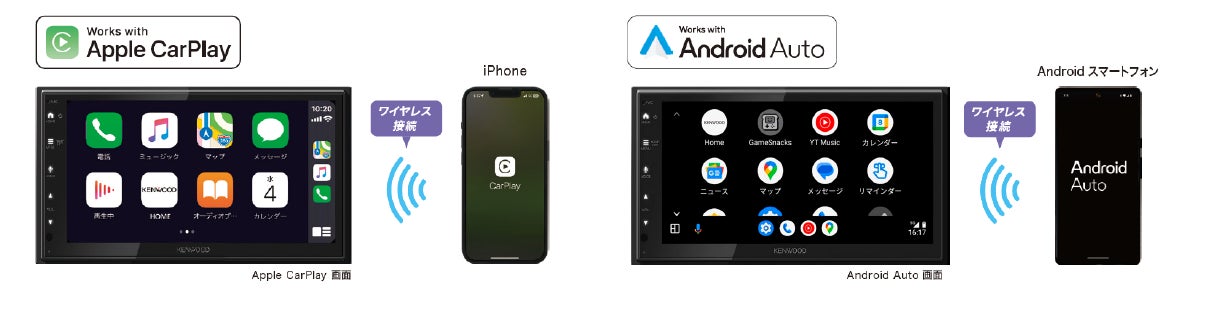「Apple CarPlay」「Android Auto™」とワイヤレスで連携する