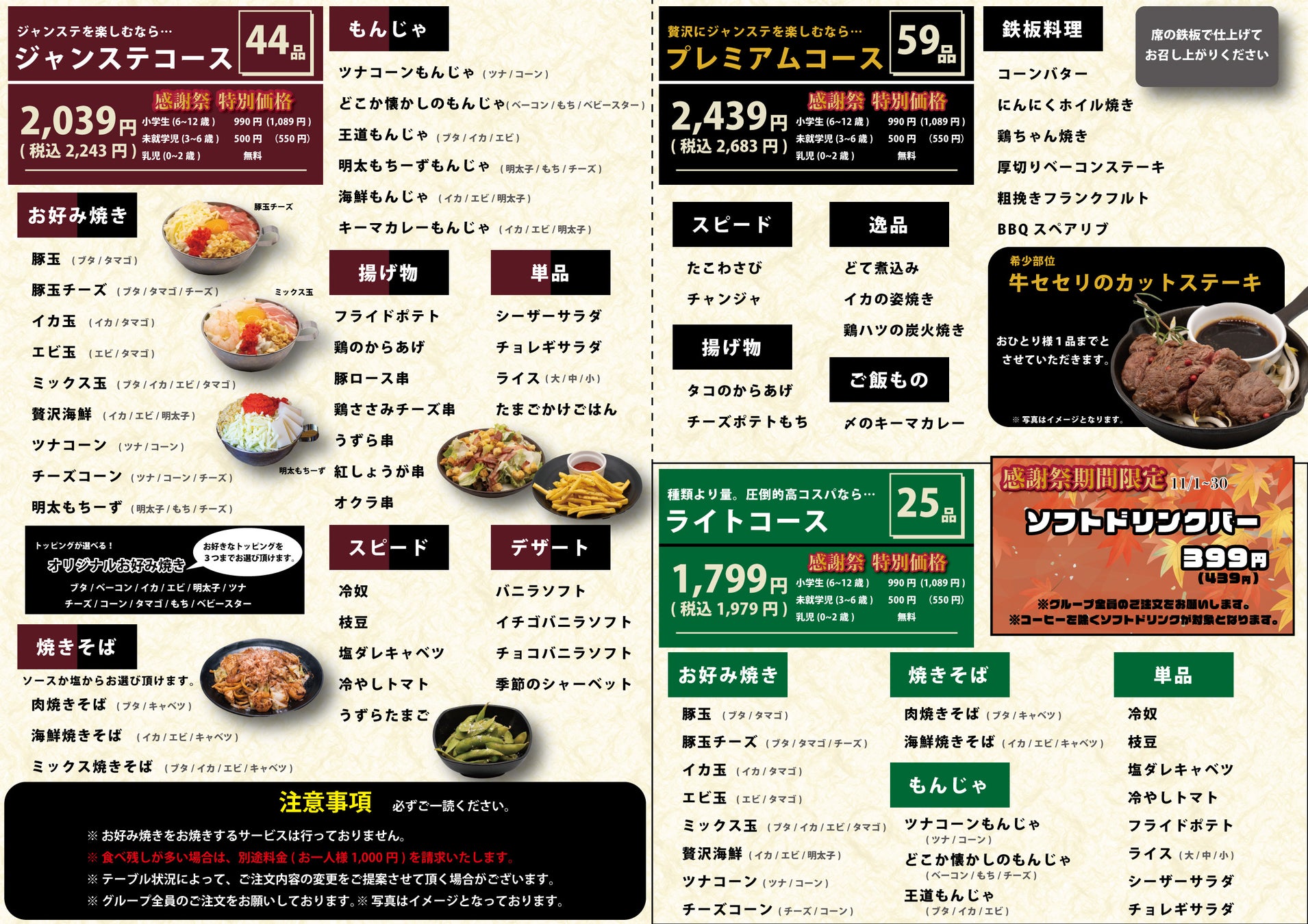 そんな「ジャンステ~鉄板/お好み焼き~」で、11月1~30日の1ヶ月間【感謝祭】を開催することとなりました。