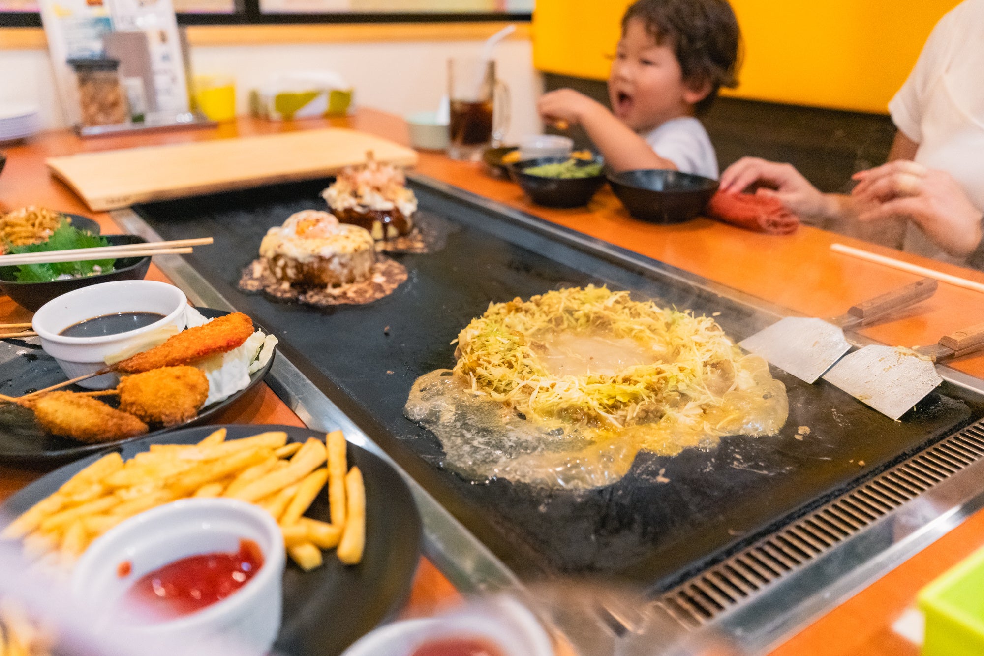 【老若男女全ての方が楽しめる飲食店】をコンセプトとし、幅広い年代に愛されるお好み焼きをご提供。子連れだとハードルの高い外食をもっと気軽に楽しんでいただけるよう40坪超えの大型キッズパークを設置しております。