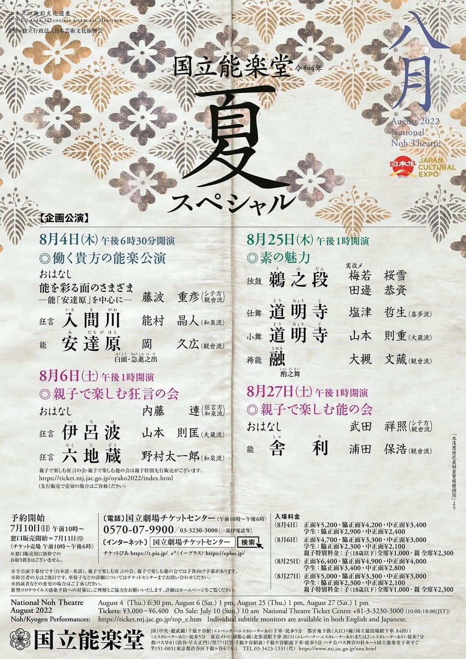 【国立能楽堂】能楽デビューに最適! 大人のための能楽入門公演開催・チケット好評販売中!(8月4日(木)午後6時30分開演)