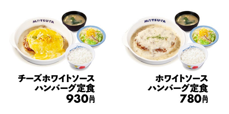 | 商品名 ホワイトソースハンバーグ定食 780円 チーズホワイトソースハンバーグ定食 930円 ※お持ち帰りいただけます。お持ち帰りにみそ汁は付きません。 お持ち帰りの場合、みそ汁は別途60円でお求めいただけます。 ※税込み価格です。 発売日 2023年5月2日(火)午前10時 ~ 対象店舗 一部店舗を除く全国の松屋 ※一部店舗にて、4月18日(火)より実験販売を開始いたします。 |