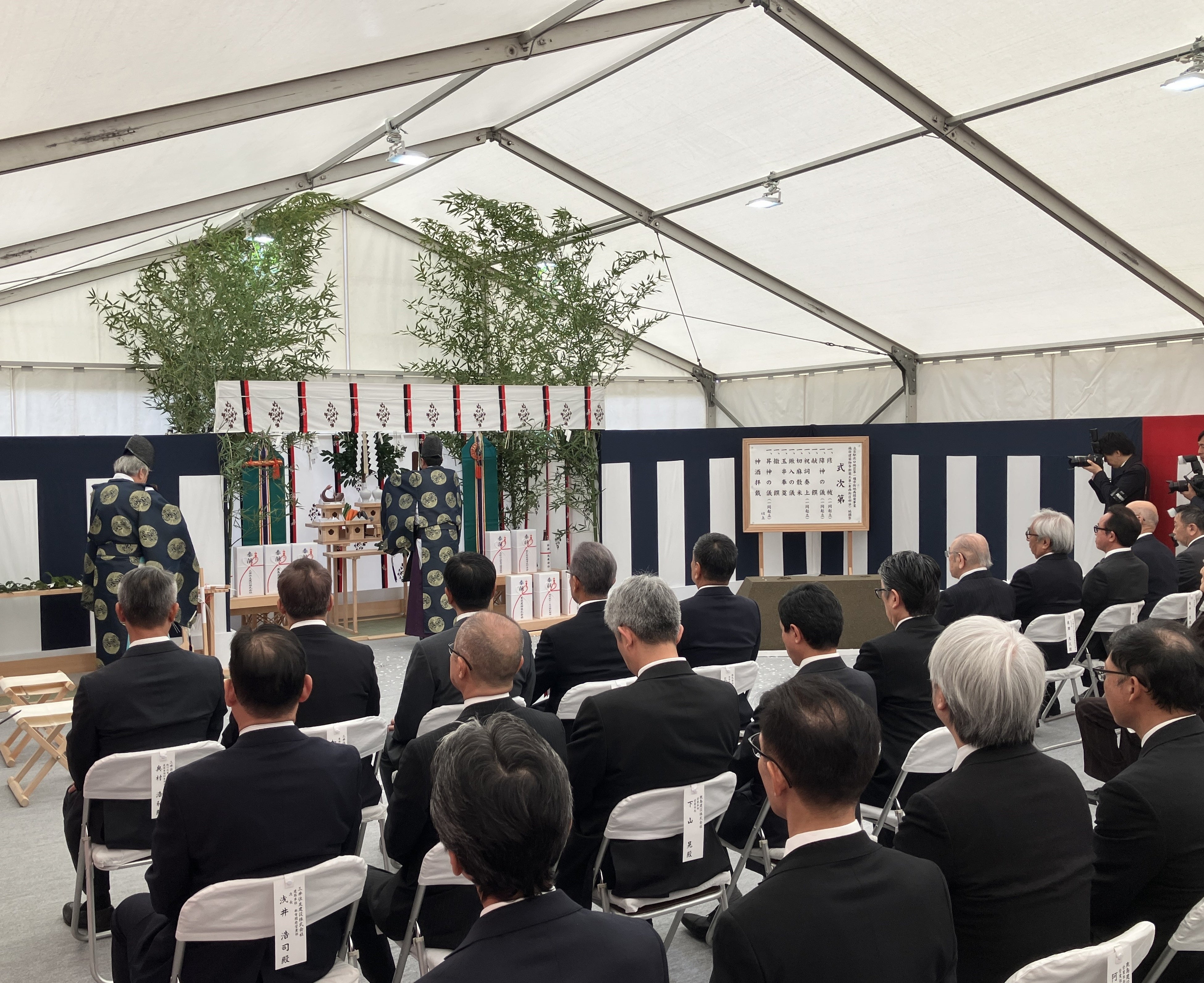 東西街区の新築工事着工を前に、2025年10月29日に本事業の敷地内にて、地鎮祭を行いました。地鎮祭には、本組合・德田理事長をはじめとし、参加組合員である東京建物、旭化成ホームズ、首都圏不燃建築公社、施工者である鹿島・三井住友特定建設工事共同企業体が参加しました。