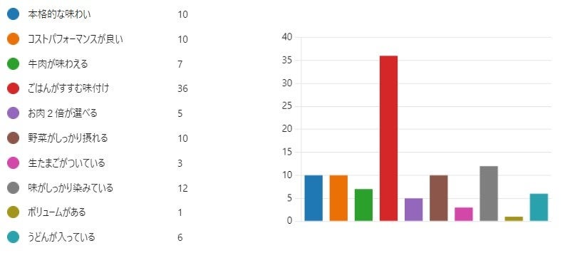 調査内容:『すき焼き定食』『肉増・すき焼き定食』のおすすめポイントを選択肢のなかから2つ