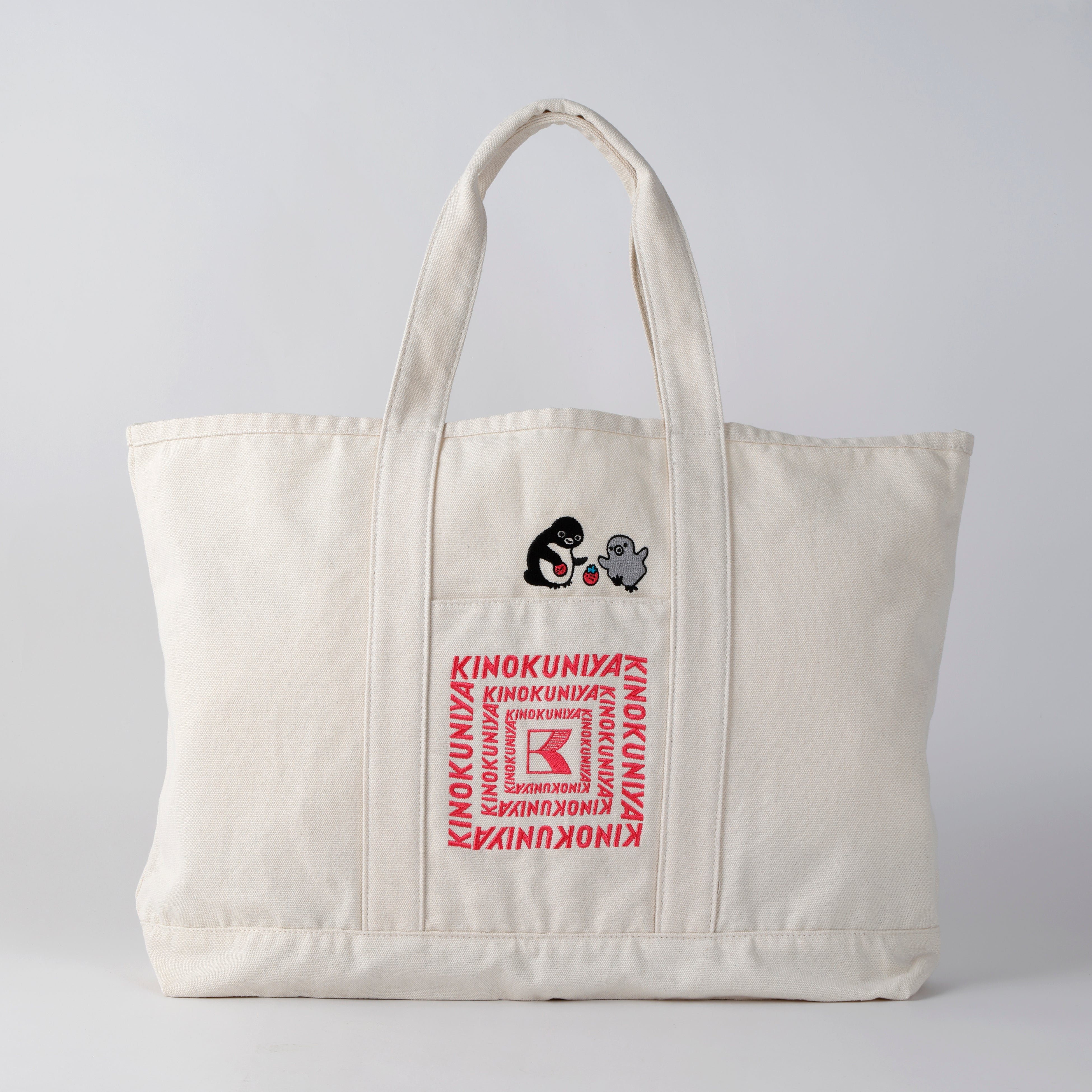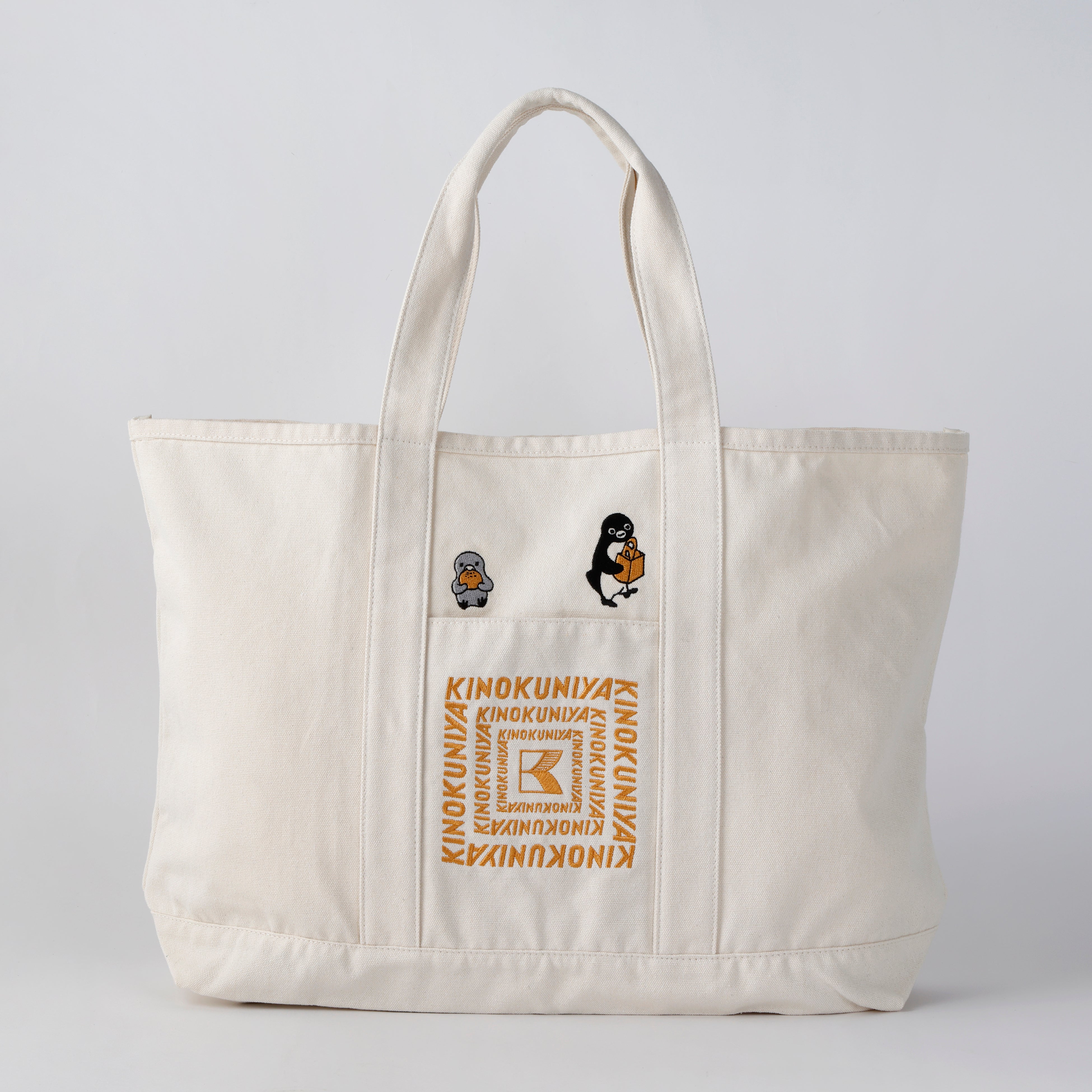 キュートなSuicaのペンギンと紀ノ国屋ロゴの刺繍が目を引くトートバッグを、3種のラインナップで発売いたします。