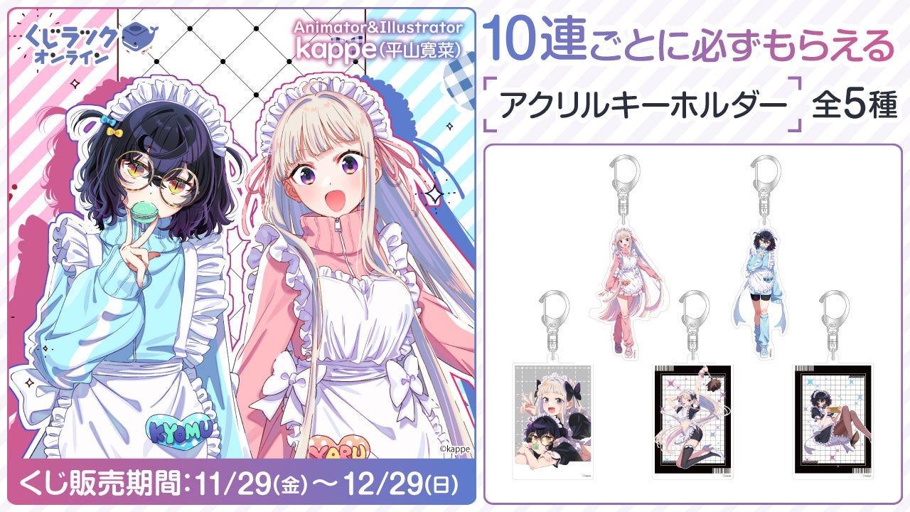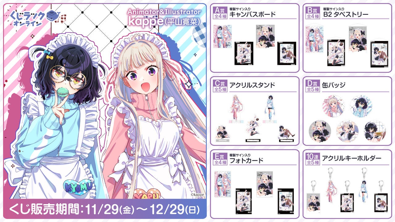 アニメーター&イラストレーター「kappe(平山寛菜)」が「くじラックオンライン」に登場!新規描き下ろしなどのオリジナルグッズがハズレなしでゲットできる!2024年11月29日(金)より発売開始!